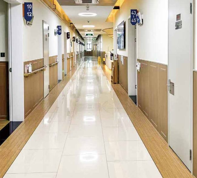 • 不易污染、不易老化、表面色澤飽滿、能很好地還原裝飾層的色彩和花紋,密度和良好的防水性、防變形、耐磨、A級防火、潔菌等性能,同時也是國內(nèi)外少數(shù)防裂、抗變形兩項指標同時達標的企業(yè)之一。被廣泛地用于醫(yī)養(yǎng)室內(nèi)墻面及頂面裝飾,讓顧客放心使用,無后顧之憂。